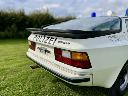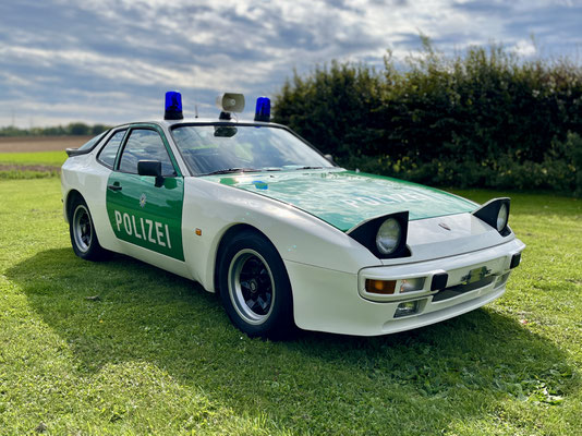 Nach dem Anschlag auf Generalbundesanwalt (GBA) Buback (1977) durch die RAF wurden Personenschutz und Begleit-kommandos für Politiker, Wirtschaft aber auch Justiz massiv verstärkt. Die Polizei hatte Bedarf an schnellen Einsatzfahrzeugen und kaufte 1983 diesen sehr frühen 944 (der im Fz-Schein noch als "924" bezeichnet wird) als Musterfahrzeug bei Porsche und baute ihn vollends zum Funk-Streifenwagen aus. Mit weiteren Verfolgungs- und gepanzerten Zivilfahrzeugen wurde Bubacks Nachfolger, GBA Rebmann, täglich eskortiert und chauffiert. Als dieser 1990 in Ruhestand ging, wurde unser 944 „zivilisiert“ und hatte harte Jahre bei polizeilichen Sicherheits- und Gefahrentrainings zu überstehen, bis auch er 1998 in Ruhestand durfte. Im Jahr 2000 wiederbelebt, bekam der 944 seine alte Polizeiausstattung sowie die weiß-grüne Lackierung zurück. Nur noch bei Veranstaltungen und zur Repräsentation eingesetzt, hatte er es jetzt wesentlich entspannter und gemütlicher, was auch eher seinem überschaubaren Temperament entsprach.